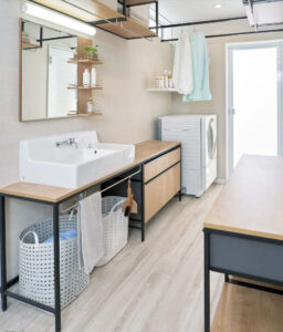 共働きで夜に洗濯をするご家庭や、花粉・PM2.5が気になる時期に重宝します。脱衣所を少し広げるだけで、家事の負担が劇的に軽くなります。
