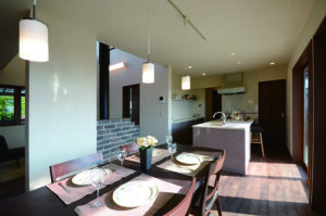 アイランドキッチンを中心に、配膳や片付けがスムーズに行える動線計画。